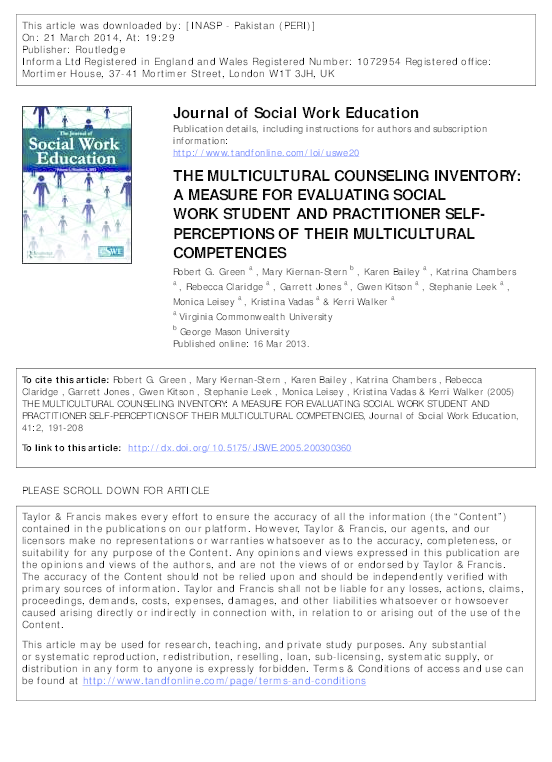 Pdf The Multicultural Counseling Inventory A Measure For Evaluating Social Work Student And Practitioner Self Perceptions Of Their Multicultural Competencies Karen Bailey Academia Edu